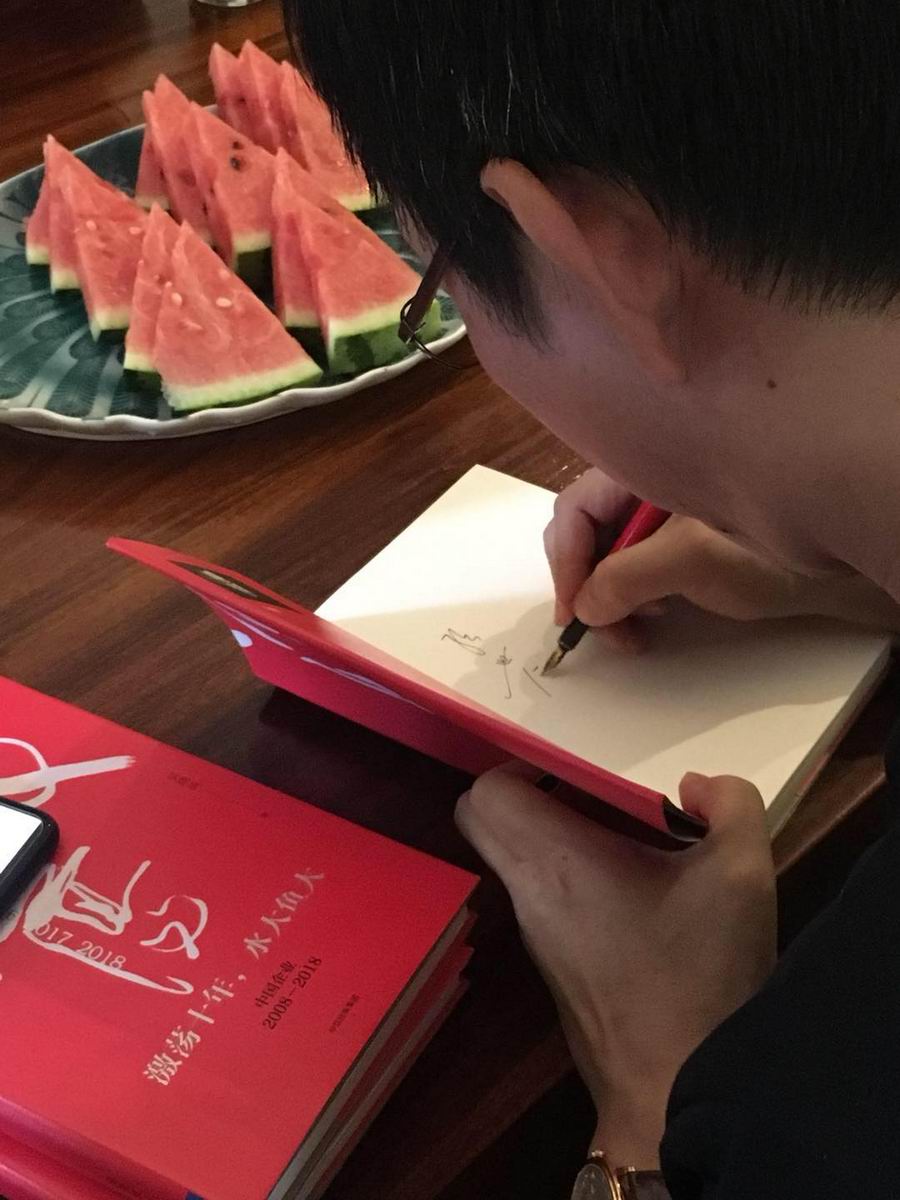 2018年5月17日,吴晓波与海信容声董事长贾少谦在静逸别墅会面,双方就容声企业发展历史做了交流。现场赠送海信容声《激荡十年,水大鱼大》图书,吴晓波现场亲笔签名。